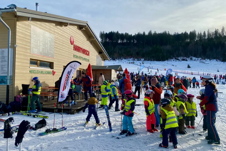 Alle Kursteilnehmer treffen sich am Harryhirsch Kiosk an der Talstation Wasenlift in Muggenbrunn. Haltet ausschau nach unserer weißen Beachflagge mit dem Skizunft Logo und einem Pinguin. Liftkarten für das Skigebiet können online gekauft werden.